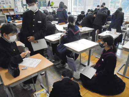 調理実習で行う活動の役割分担をしいています。今からみんな楽しそうです。