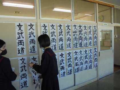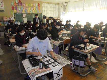 書き初め大会が行われました。冬休みの間の練習の成果を発揮することができたかな?