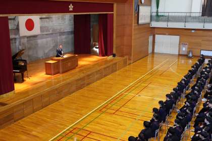 小幡校長先生が式辞の中で、能登半島地震で甚大な被害の中でも「希望」を持ち続ける被災者の方の話をされました。