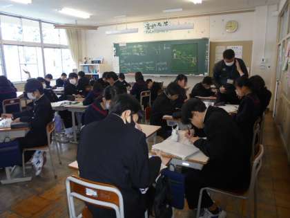 グループになり、協力しながら実像と虚像の作図をしています。実像とは上下左右逆さまに映る像で、虚像はレンズ越しに映る像のことだそうです。私は逆かと思っていました・・・