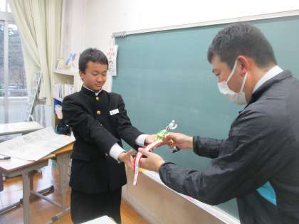 一番早く給食の準備に取りかかったのは、2組のC2班でした。生活部門のMVPのトロフィーを授与しました。おめでとう!