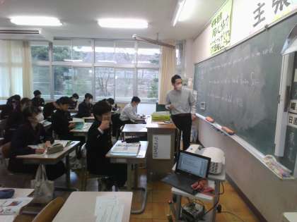 21H(写真下)は、英語の学習で、最前列の男子2名は姿勢を整えながら話を聞いています。