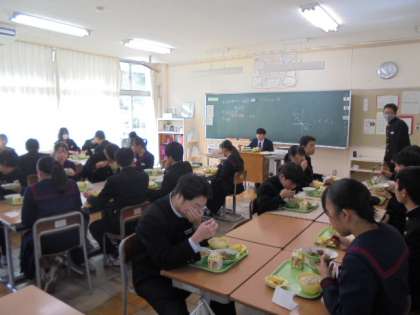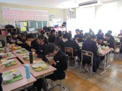 クラスのみんなと語らいながら楽しく給食の時間を過ごしています。