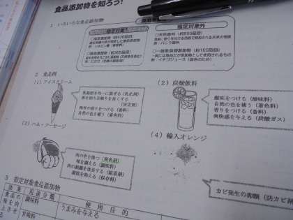 写真下:15H 家庭科 食品添加物のプリントの一例