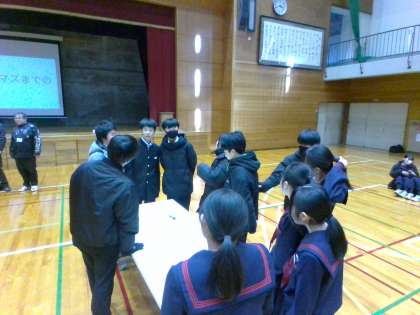 2/7(水)放課後に、第42期生徒会執行部主催の「沢中FESTA」が開催されました。今回は、全校生徒を対象としたクイズ大会で、クラスの生活班(1班〜6班)で一つのチームを作り、学年関係なく、協力して問題の答えを考えていました。