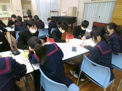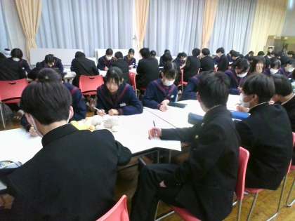 今日は平和学習2時間目。映像資料を見て、昭和20年頃の広島の女子中学生の毎日の様子について学び、感想を書きました。