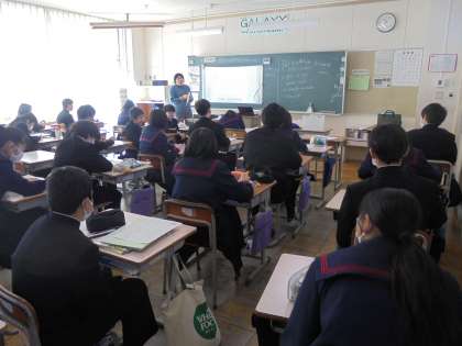 教室で保健分野と体育分野についての用語の確認等をしています。