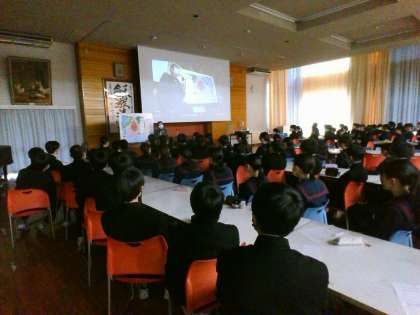 本日は、平和学習として「語り部さんに学ぶ講演会」がありました。この講演会では、実際に広島被爆者援護会の語り部さんをお招きし、当時の状況や核兵器の恐ろしさについてのお話を聞きました。