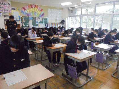 明日からの学年末テストに備え、プレテストに取り組んでいます。