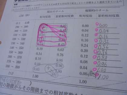累積相対度数を用いることによって、過去と現在の自分や、相手チームと自分のチームとの比較などが容易に行えます。スポーツなどの世界でも、累積相対度数のデータを分析して次に生かすことが行われています。