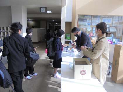 入学式を終え、本日から新入生が元気に登校しました。自転車通学生は、ヘルメットを購入し、午後からの交通安全教室を経て、明日から自転車に乗って登校します。今日は自転車を押しての登校です。2、3年生も元気に登校しました。