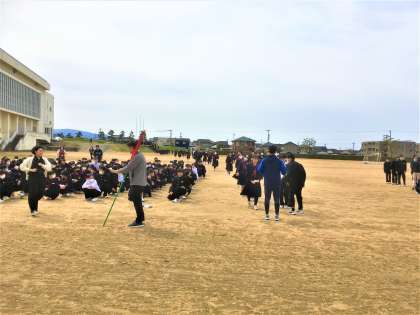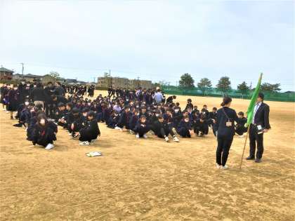 教室で避難経路を確認した後、火災を想定して素早くグラウンドへ避難完了することができました。