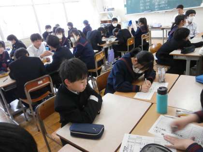 会長が司会進行をして、班ごとに案を出し合い、その中から学級目標を決めました。時間をかけて真剣に考えました。