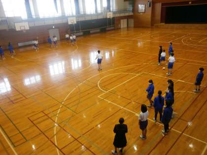 集団行動の練習をした後、ドッジボールをしました。身体を動かす活動は楽しそうです。