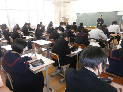 教科書に載っている阿修羅像の鑑賞をしています。それぞれの感性で意見を出し合っています。