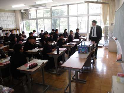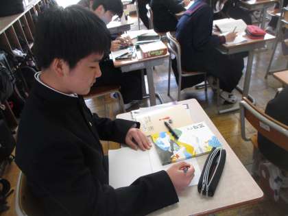 22H国語の授業です。先生の話を聴き、学習課題を把握して、ノートに真剣に自分の考えをまとめていました。