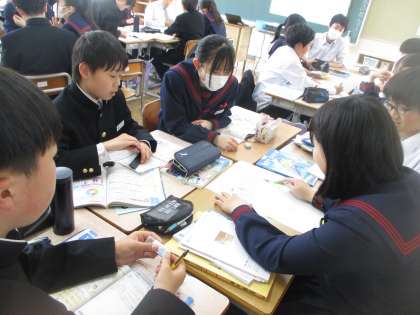 21Hの保健体育の授業の様子です。「日常生活の中でケガをしない方法はあるか」について班員と考えました。イラストを見ながら、どんな危険があるかを話し合っていました。