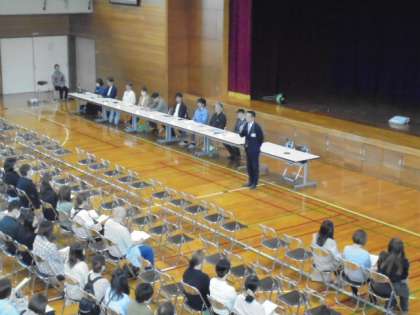 本日、授業参観が行われ、その後PTA総会、学年懇談会、部活動懇談会が行われました。画像はPTA総会のようすです。