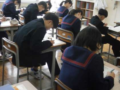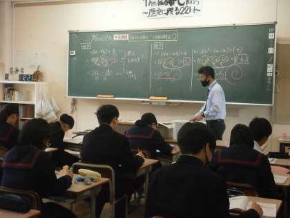 22Hの数学の授業の様子です。分配法則を使った計算を学習し、それぞれがプリントの問題をテストの様に集中して解いていました。