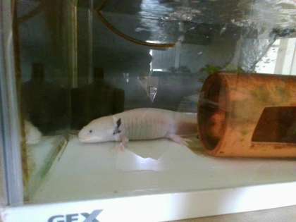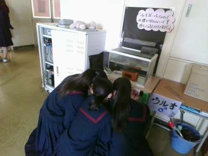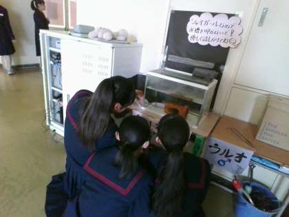 以前から学校で飼っているウーパールーパーの世話を3学年が担当しています。早くも生徒たちのアイドルとなっています。水槽の前を通るたび、生徒たちは声をかけています。今年一年、大切に育てたいと思います。