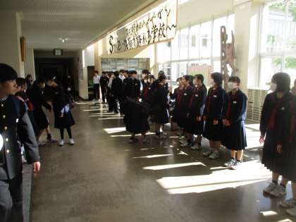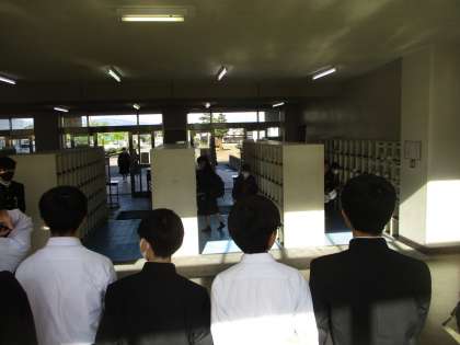 元気な挨拶と「よい1日にしましょう!」という声掛けを行っていました。