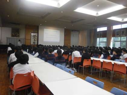 その後、学校生活にについて「時間を守る」「身なりを整える」ことをもう一度見直していこうという話もありました。具体的には、4限終了後10分以内には給食の準備をすること、授業のそれぞれ2分前には全員着席すること、さわやかチェックを通して各自が自分の身なりを確認することです。
