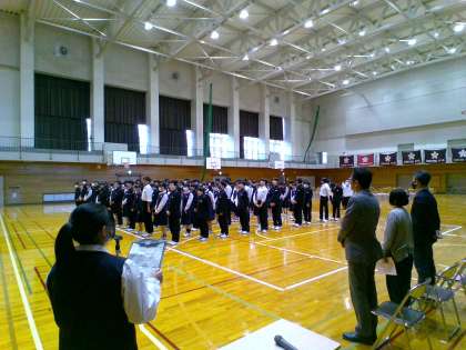 引率の先生方をお迎えして、校長先生のお話を聞きました、整列や点呼等、集会で行う当たり前の活動がうまくいかず、厳しくも温かい言葉をいただきました。修学旅行への心構えがまだできていないと気付きました。3日間無事に予定通り活動できるのか心配ですが、生徒は結団式後の係別打ち合わせや、隊形移動などの練習に生かせていたことから、生徒の心にもきっと響いたことだと思っています。