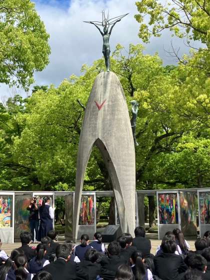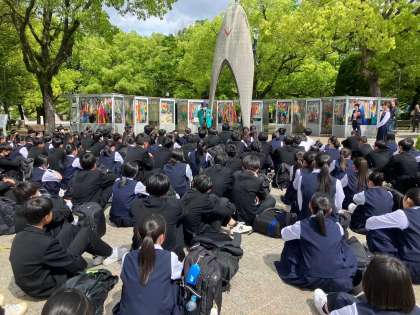 平和セレモニーを行いました。何と講演して頂いた石原さんが駆け付けて下さいました。みんな見違えるように成長したと喜んでおられました。ありがたいです。
