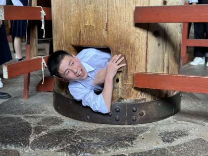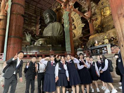 1組は、東大寺と興福寺を見学してます。大仏の大きさに驚いて、鹿と戯れてます。