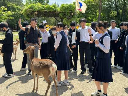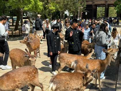 鹿せんべいを持つと、すぐに戯れてきます。残念ながら、興福寺は工事中でした…