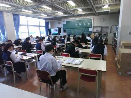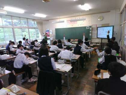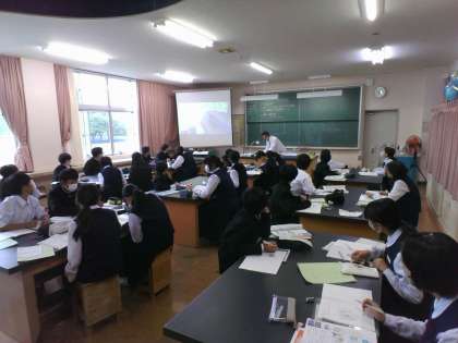 2時間目、1年生は移動教室での授業にも遅れることなく、集中して参加することができていました。休み時間には、登校時の雨天により濡れたものを乾かす様子もありました。