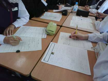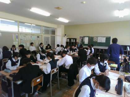 班内での活動では、互いのレポートを笑顔で評価し合う姿が見られました。