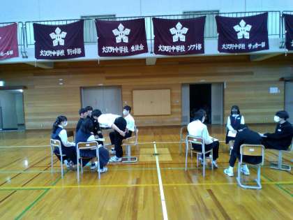 5時間目の学活は、14歳の挑戦に向けて「あいさつ」の練習をしました。