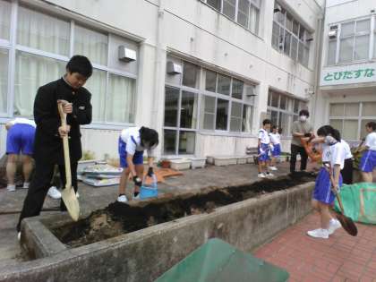 6月上旬に、花の苗を植える予定です。夏には生徒玄関前にきれいな花が咲くと思います。