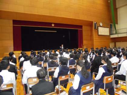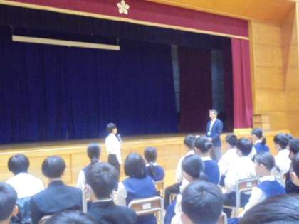 4限目に1年生は、明日の校外学習に向けて結団式を行いました。