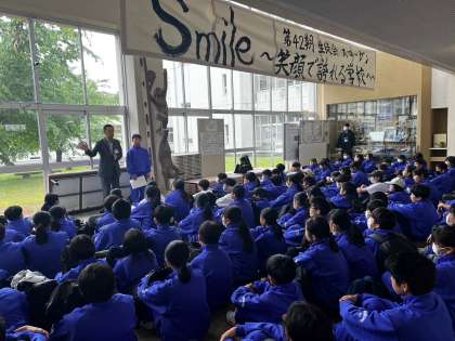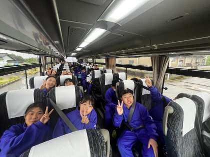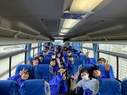 出発時は小雨が降っていた1年生 校外学習ですが、 現在 バスに乗って移動してからは青空が見えます。