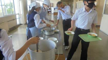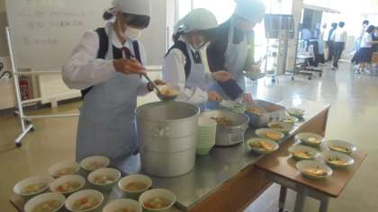 給食配膳の様子です。残色0を目標に配りました。 上:31H 下:33H
