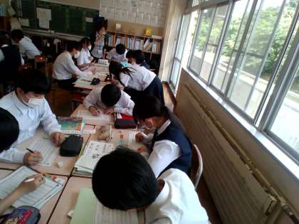 6月10日(月)2学年 6限の授業の様子 公開日 2024/06/10 更新日 2024/06/10 2年生の活動から 23Hの英語の授業です。ALTの先生とカードを使って正しい語順に班で並び替えています。