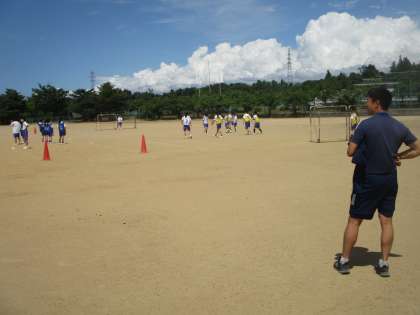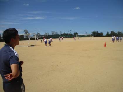21Hはグランドで男女に分かれてサッカーのゲームをしています。声を掛け合いながらゴールを目指してボールを追いかけていました。