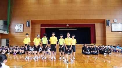 壮行会 男子ソフトテニス部の様子です。