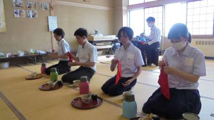 暑い日だったため、水でお茶を点てました。さわやかな活動になりました。