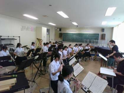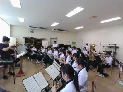 吹奏楽部は、外部の指導者を招き、半日練習を行いました。来月、出場予定の県吹奏楽コンクールの演奏曲「鬼姫〜美しき幻影」を中心に練習しました。明日は、本番のためのホール練習、明後日はオーバード・ホールでの富山地区吹奏楽祭に参加します。