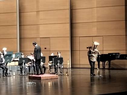 大きなホールで、少し緊張した面持ちでしたが、およそ10分間力一杯の演奏をホールに響かせていました。