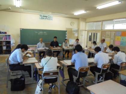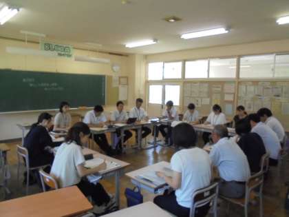 授業後、今後のよりよい授業を作り上げていくために、小学校の先生方と中学校の先生が教科ごとに分かれて話し合い、いろいろな情報交換を行いました。