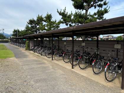 写真は1学年の自転車小屋の様子です。ヘルメットの置き忘れたなくなり、とてもきれいに整頓されています。