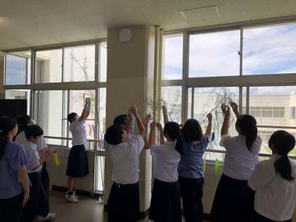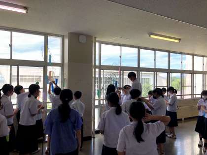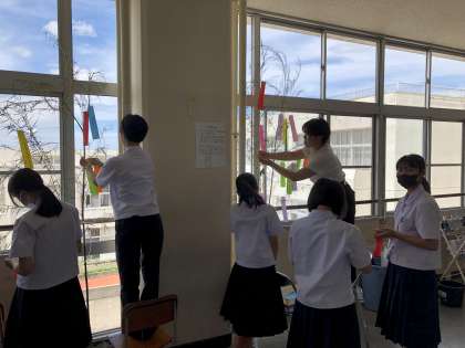 5限の学級活動では、7月7日の七夕行事にちなんで、短冊に願いを込めて掲示しました。これから達成したいこと、夢や目標をキラキラした顔で書いていました。7月18日(木)からの三者懇談会の際にぜひご覧ください。