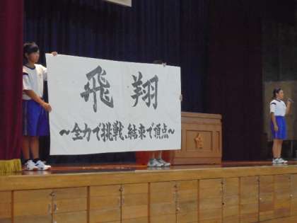 体育大会に向けての結団式を行いました。実行委員会、各団の団長が紹介され、大会スローガンが発表されました。