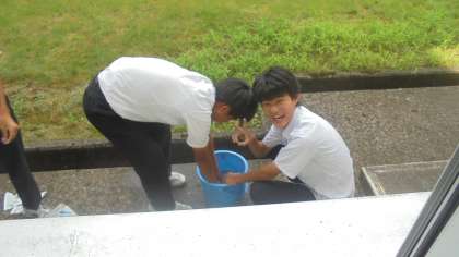 学年集会後は環境整備を行いました。普段使っている教室や用具を隅々までキレイにしました。暑い中、全力で働いています!
