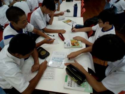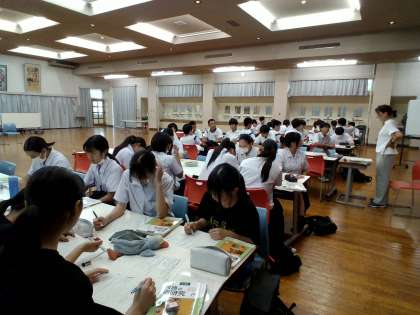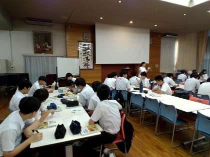 写真はランチルームで国語(古典)の学習をしている様子です。