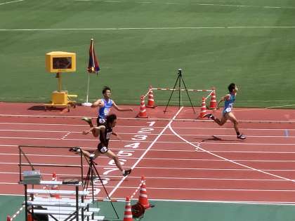 陸上競技部は2名の生徒が標記の大会(共通男子100m、共通女子100m)に出場しています。